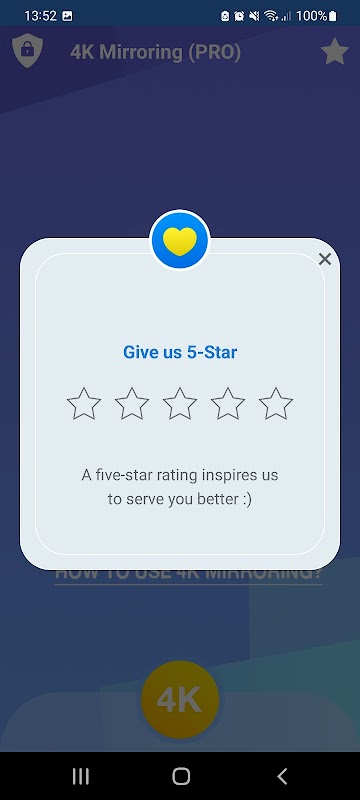 4K Mirroring will assist you to scan and mirror your android phone or tab's screen on smart TV/Display ( miracast enabled ) or Wireless dongles or adapters and will get a great big screen phone experience by connecting your phone to a TV screen via This Cast To TV app and easily stream movies from phone to your big TV screen!