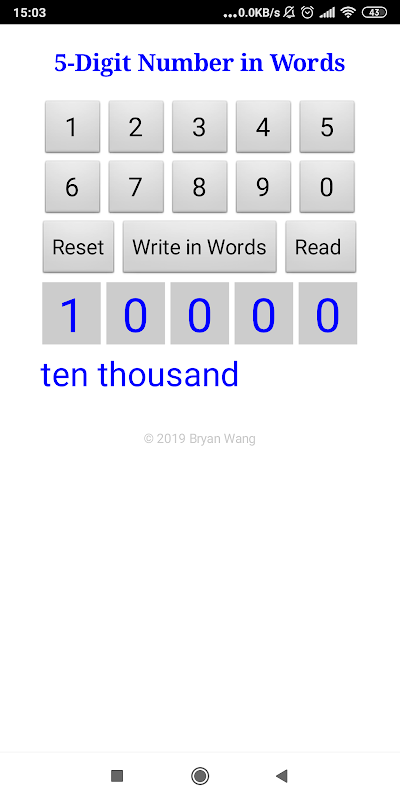 The app shows a 5-digit number in words.