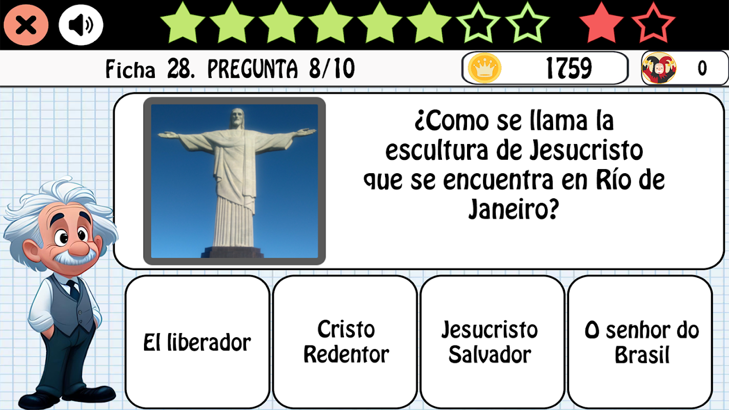 Imagine Einstein has a unique mission: to conquer the world not with weapons, but with the power of knowledge and intelligence. To achieve this, he needs your help answering over 5,000 trivia and general knowledge questions covering history, geography, science, art, literature, math, sports, movies, and music.