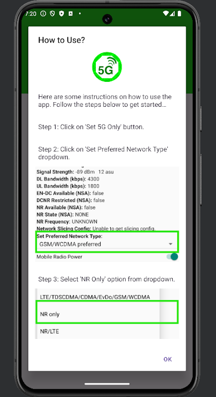 The 5G Only Network App allows users to configure their mobile devices to operate in 5G Only Mode, also known as NR Only Mode. This app provides users with step-by-step instructions for setting up NR Only Mode on compatible devices, offering greater control over network configuration.