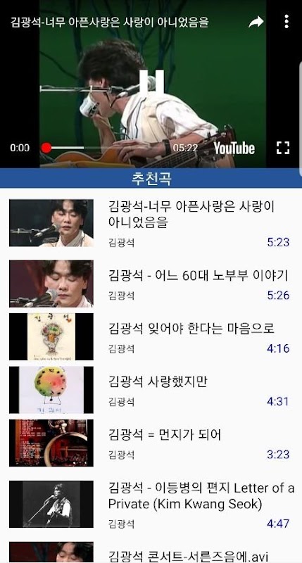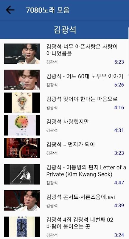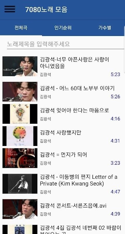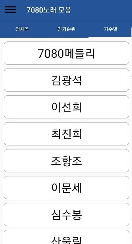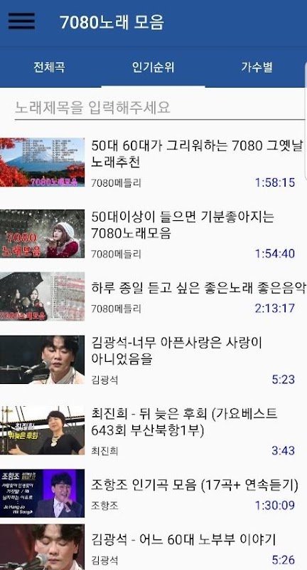 가수별 또는 여러가지 7080 노래들을 전부 무료로 들을 수 있습니다
