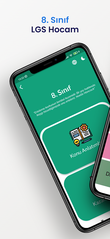 Our application, which is prepared in accordance with the 8th grade curriculum, includes online tests, lecture notes and lecture videos of 8th grade Turkish, Mathematics, Science, Revolution History and Kemalism, English, Religious Culture and Moral Knowledge courses.