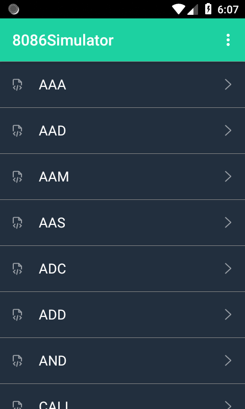 Here is the first and one and only 8086 simulator in smartphones…!!! 8086 simulator is a simple Android app where you can study about 8086 Instructions and program execution. You will be able to simulate assembly language programs. Also you can execute the program step by step and see how the values of all registers and flags are changing with the execution of each instruction. All instructions used in the 8086 microprocessor and a sample program for each instruction is included in this app.
