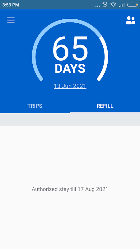 ■ receive a notification when the permitted days count drops as low as 3 days for your ongoing trip (if the exit date is left empty),