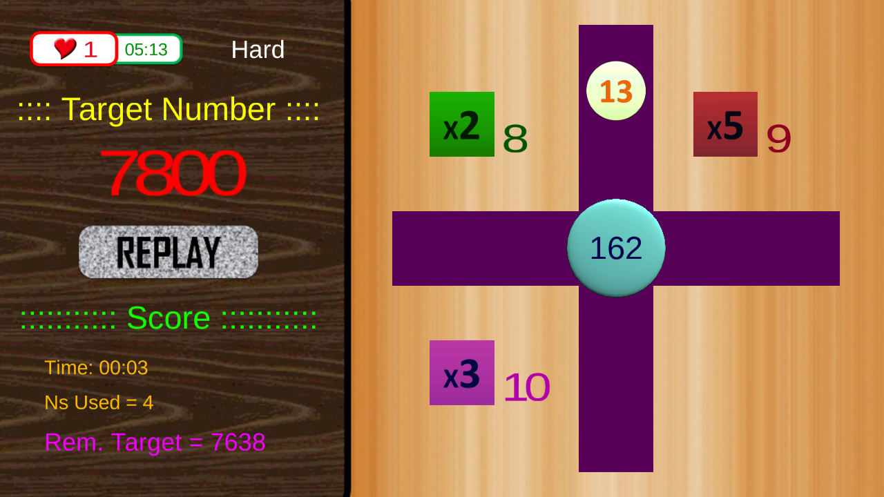 3. Hard: In Hard level, your Target Number will be between 1000 to 9999 numbers. Ns' speed will be the fastest.