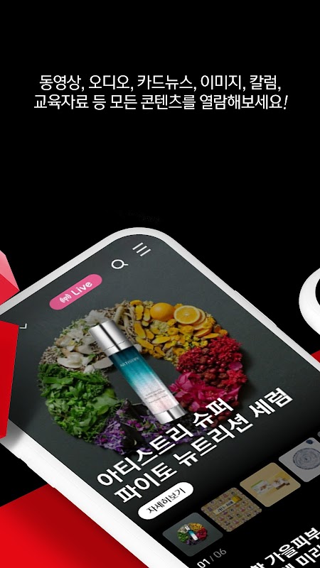 A content app is a curation-based content hub app that allows you to conveniently view all types of content provided by Amway Korea.