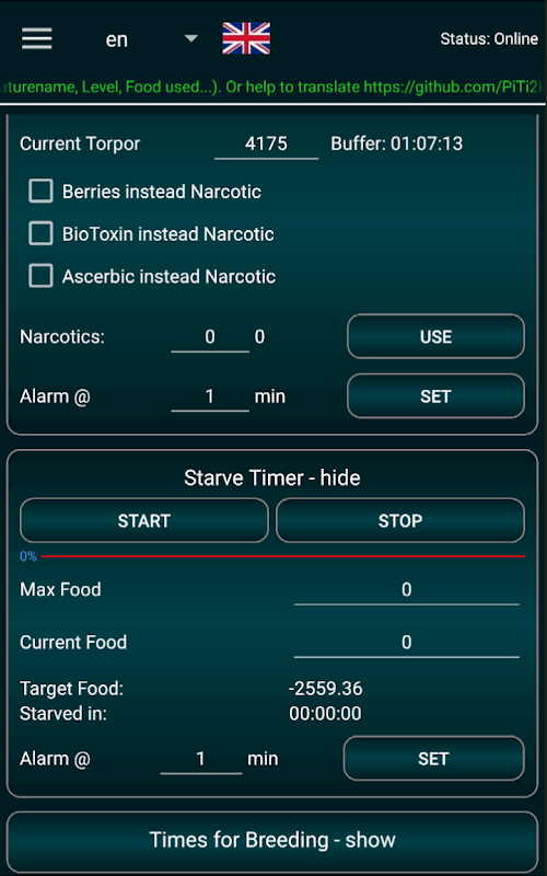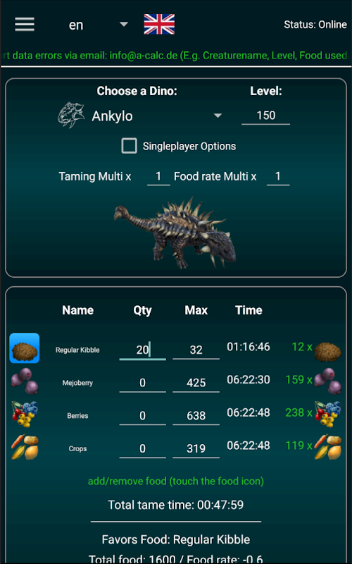 Taming calculator and companion App for Ark: Survival Evolved and Ark: Ascended