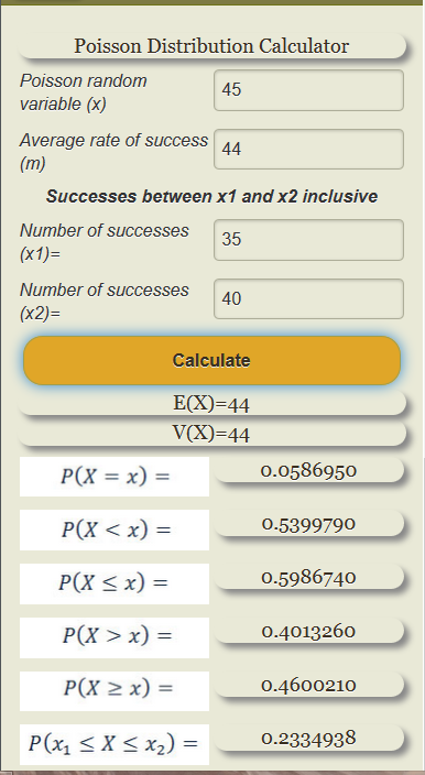 Poisson Distribution Calculator.