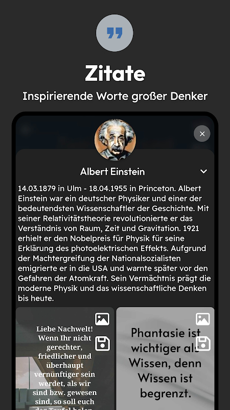 A-Z Quote of the Day is the most comprehensive app for sayings and quotes in German-speaking countries. 🌍 Don't miss this app!