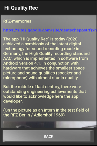 "Hi Quality Rec" Audio Recorder records voice notes, songs, music, lectures, talks, concerts directly into high-quality AAC files.