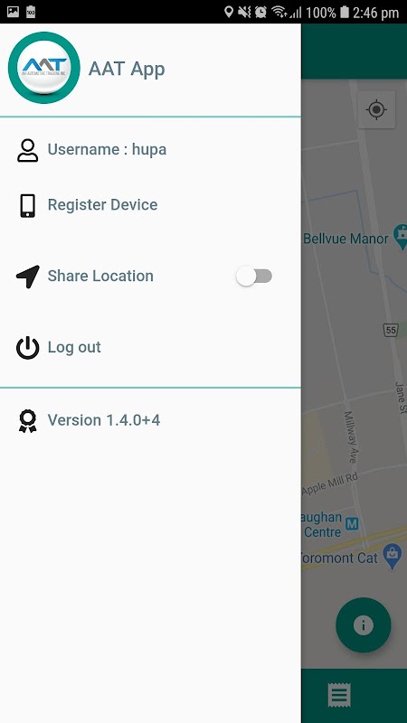 The AAT App allows the User to view assets and vehicles in map and list view. The User may also choose to share his location from the Application onto the AAT System.