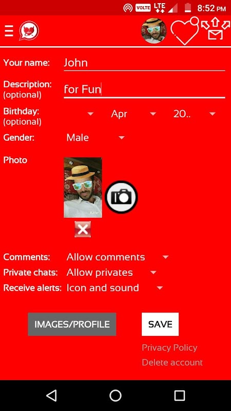 - Initially profile are locked and sending pictures are not allowed, so you just can chat anonymously.