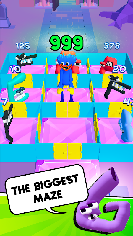 Escape maze with your favorite characters: A to Z abcd Lore letters, stickmin, siren head, rainbow friends, Choo charlie train, huggy waggy.