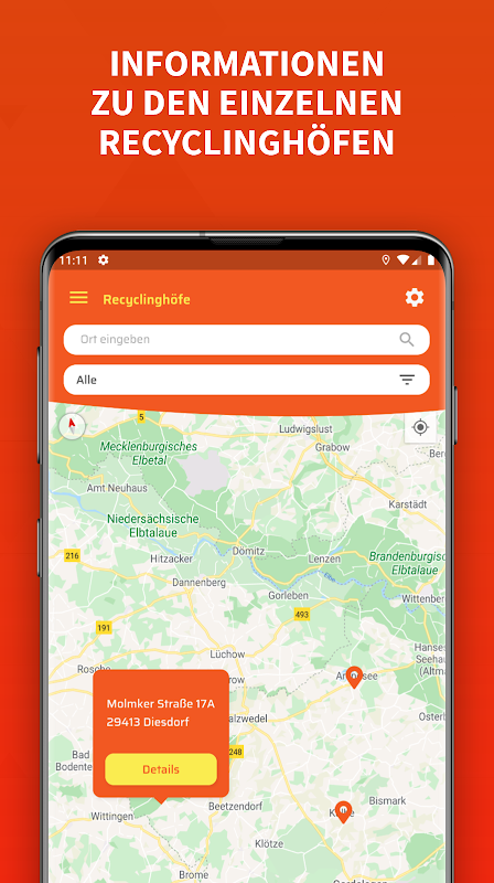 The app also has an extensive waste ABC, information on the individual recycling centers and a map with the glass and old clothes containers.