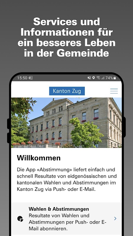 The "Voting" app provides quick and easy results from federal and cantonal elections and votes in the canton of Zug.