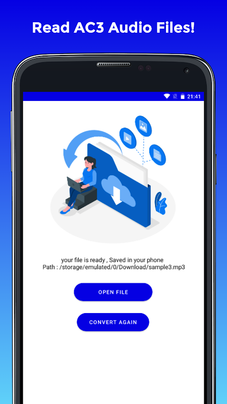So with our ac3 video player for android & eac3 video player for android you can open all your ac3/eac3 files and videos using our app. The app is very simple to use! Just open it, choose your file locally, and select the format you want to convert to from MP3,MP4,AAC,AC3,EAC3,. Once you do that, you can open the converted video and watch it on your phone!