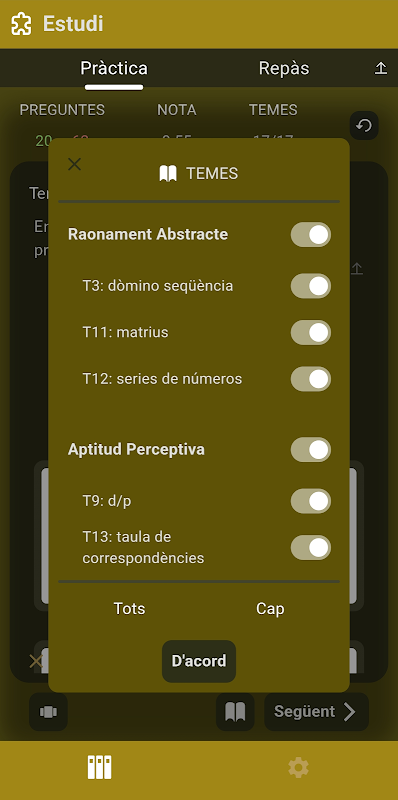 The "Academia Psicotecnics" application is a comprehensive tool designed to prepare aptitude tests.
