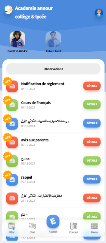 academie annour collège mobile permet au parent d'être à côté de son enfant