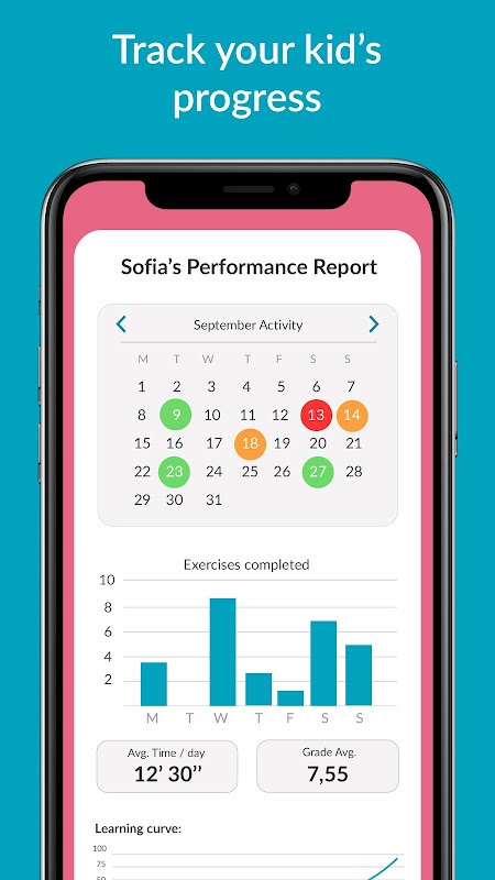 Real-time tracking: Track your child's progress, detect which topics need reinforcement, and celebrate achievements with playful rewards.