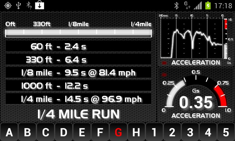 aCarputer uses you device's GPS, accelerometer and gyro sensors in combination with an optional bluetooth OBDII interface, to provide a wide variety of car centric performance information at the touch of your fingers.
