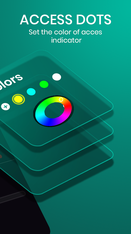 The application allows to configure the access dots. The access dots allows to set location of the access dots as well as the color of either of the dots. The application offers custom color palette to select each of the dots. The location of the dots can be decided and can be set as desired. The application offers top left, top center, and top right corner of the mobile screen.
