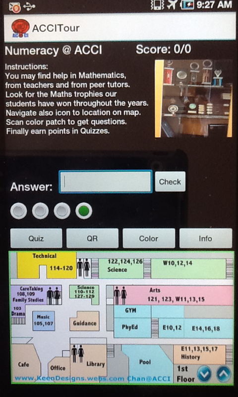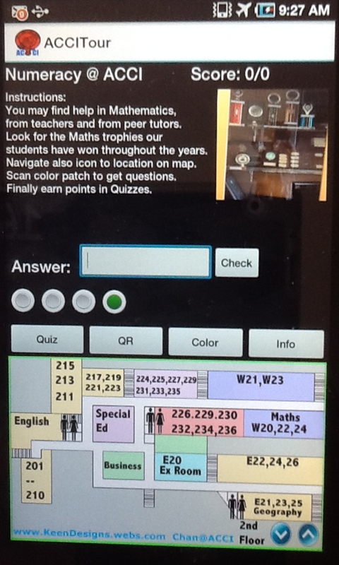 A grand tour of ACCI with augmented reality, scavenger hunt maths game.