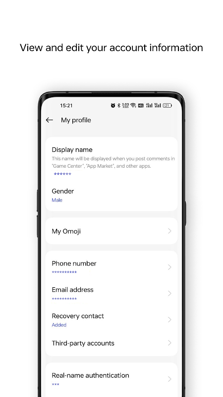Realme Account lets you manage your account information all in one place, including phone number, email, password, and more.