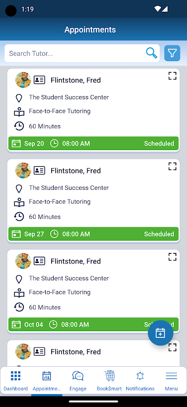 - Tutors/advisors/center staff can also view their appointments on the mobile app, and can also conduct virtual appointments via the app.