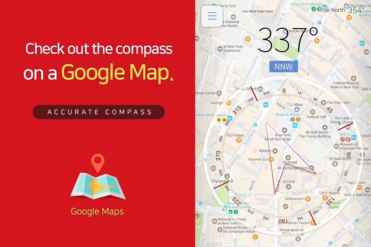 When you run the compass on a map, you can see the direction of the map more accurately.
