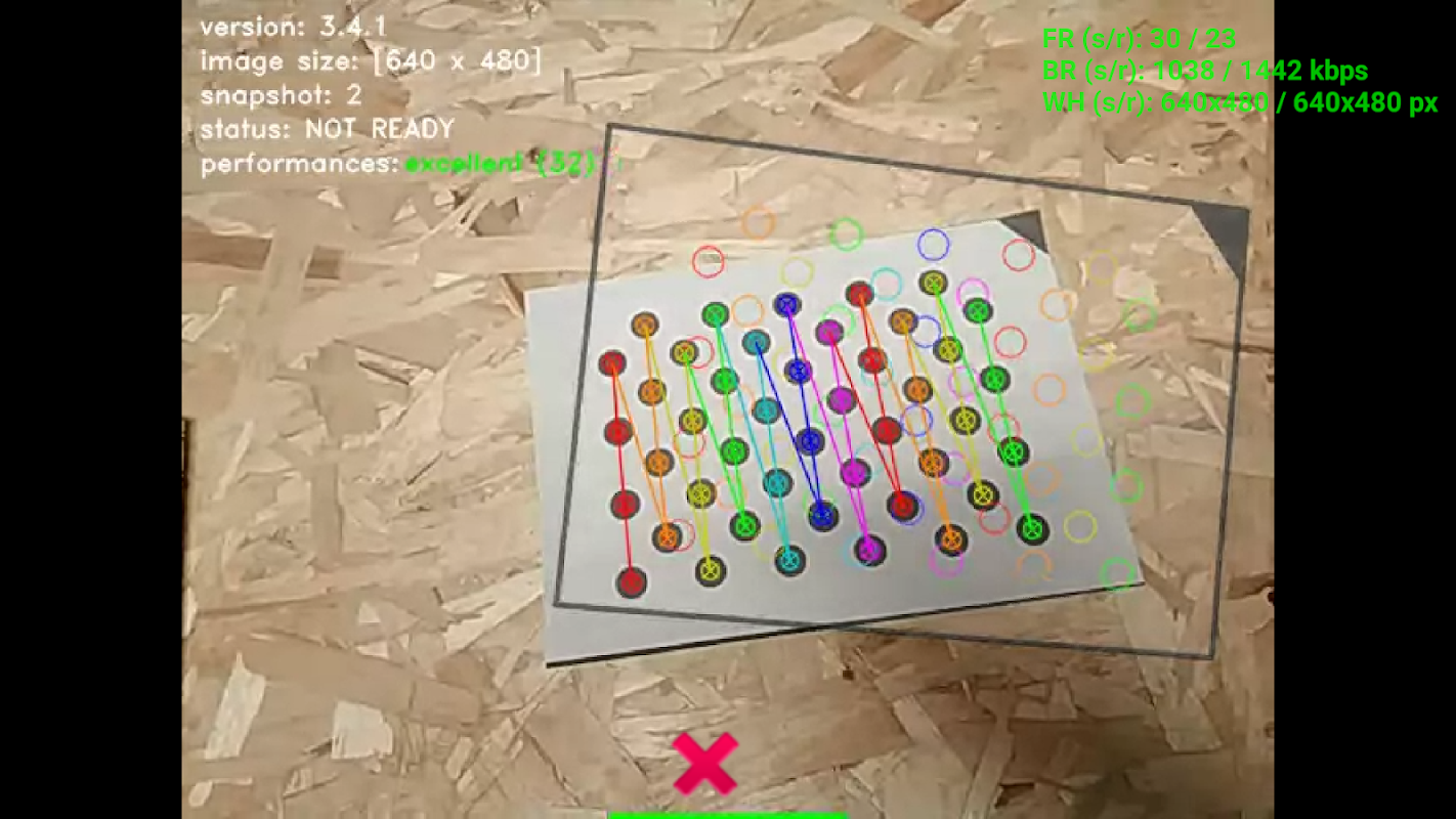 The app enters the positioning mode using a default camera calibration set or - if available - a device specific calibration set.