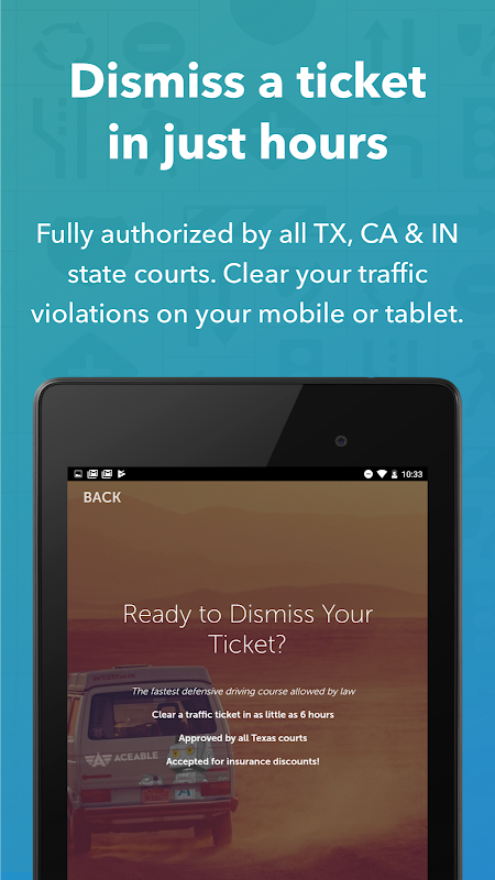 You need to clear a traffic ticket or save your hard-earned cash with an insurance discount (or both). Aceable has your back with defensive driving and traffic school that doesn’t suck. Aceable Defensive Driving for Mobile is the Texas TDLR, California DMV and Indiana BMV approved app that tens of thousands trust to dismiss their tickets.