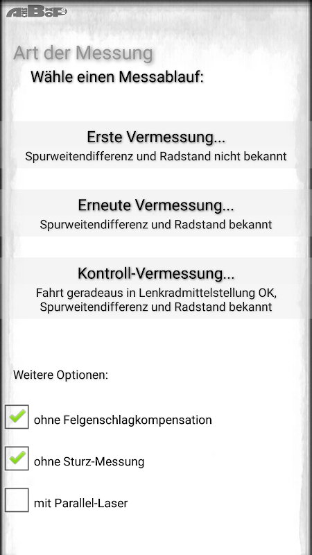 This app is intended only for a qualified group of people with expertise in automotive technology, chassis and wheel alignment. Without expert knowledge, wheel alignment is NOT possible with this app!