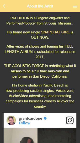 Get a custom song made by Pat Hilton. Track the artist and new album releases.