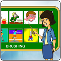Actions are shown here in a two-row, two-column matrix. When the mouse pointer moves over the picture of an action, an animation related to the action plays in the box on the right side of the screen. There are, in this program, two pictures and animations for each action. Click on the picture to view the next picture and animation.