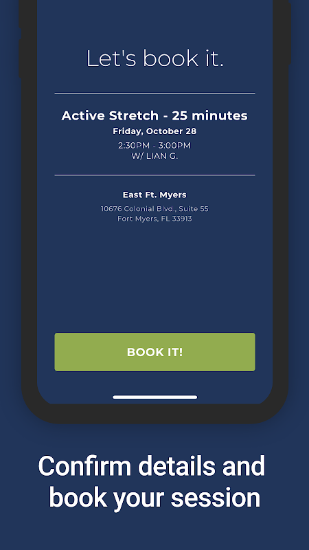 Book your appointment without hassle using the Active Stretch app. View available appointment times, choose a time that works for you, and book your session.