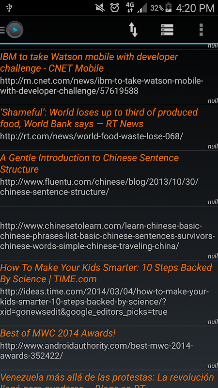 You just need to add web sites to the list "Read Later" and ActiVoz will access and read one by one even if you chose from different languages (in the case you can read more than one)