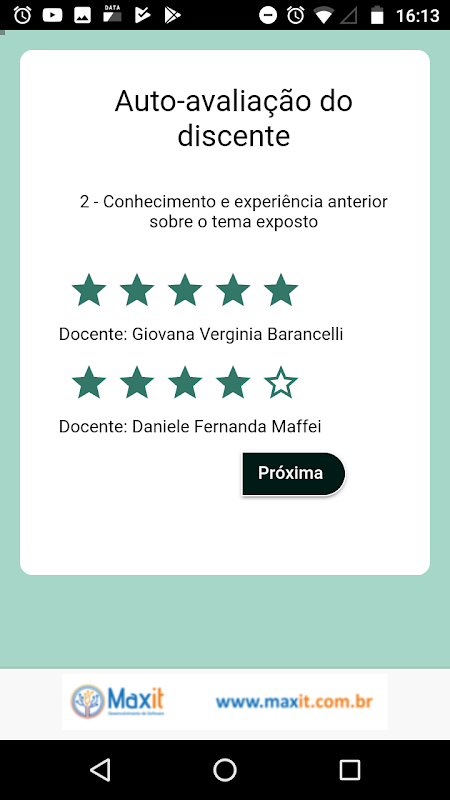 The Student must access with the code provided by the teacher in the classroom to evaluate the course