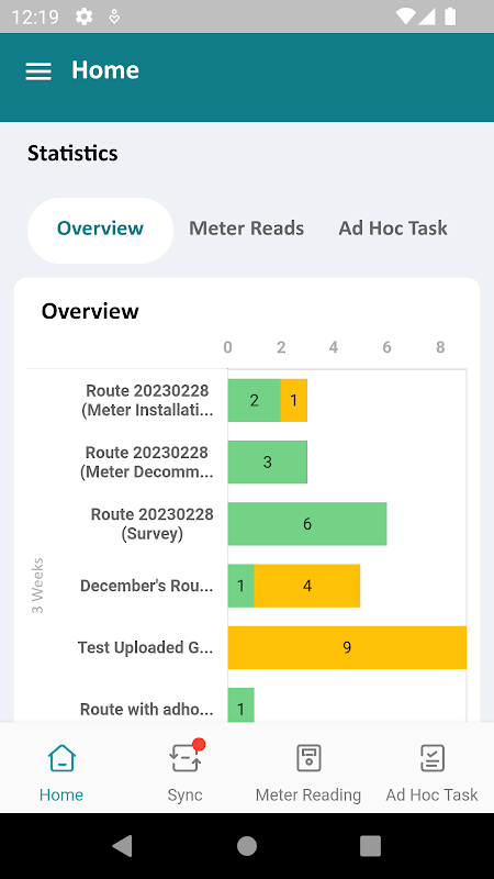 Display current and past 14 days progress of meter read and adhoc tasks
