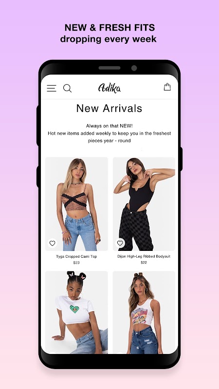 Our app is CONSTANTLY updated, with super fresh new arrivals dropping WEEKLY!