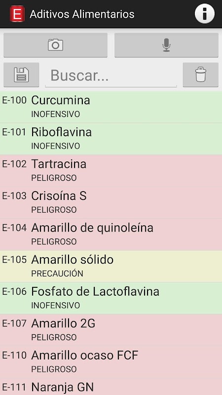 • Search additives by number or name, with voice recognition or with your mobile camera