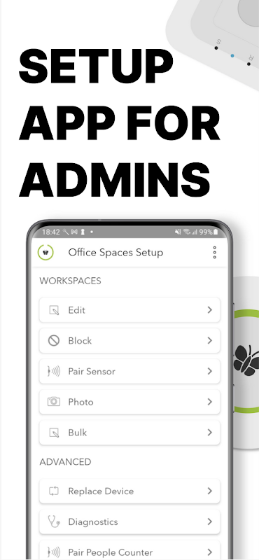 The iotspot setup app is designed for office administrators. With the setup app, you can configure your own office environment
