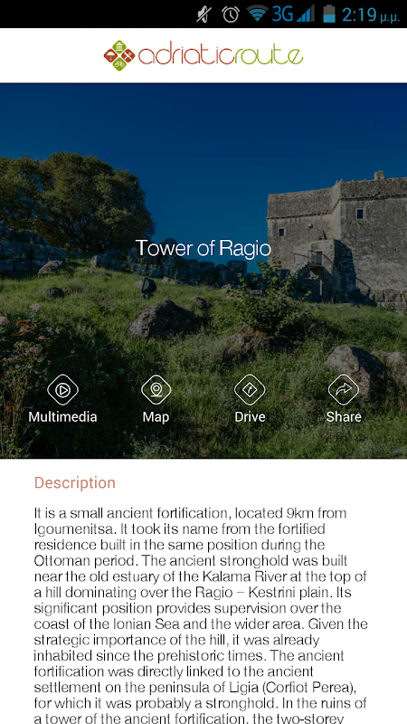 user, routing him to the desired point of interest. Finally Adriatic Route enables the user to share these POIs to the most
