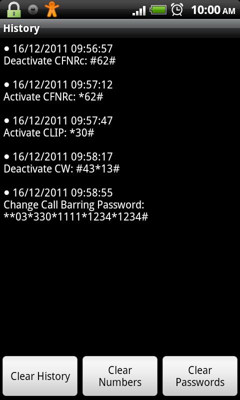 - PIN/PIN2, PUK/PUK2, IMEI, Call Barring Password