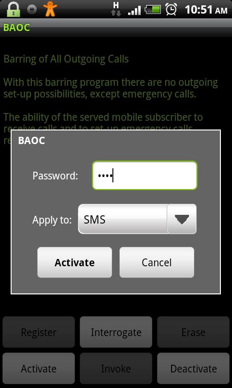 - Call Barring: BAOC, BOIC, BOIC-exHC, BAIC, BIC-Roam