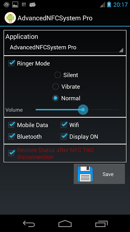 Advanced NFC System is the only application I found that keeps configured settings only when the NFC tag is connected to the phone, to restore the previous status is sufficient to disconnect the NFC tag .