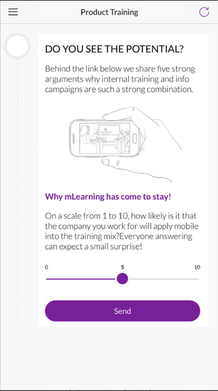 Training program are built on a timeline. This means that interactions such as challenges, tips, questions, self evaluations and rewards reach the participants with set time spans between them.