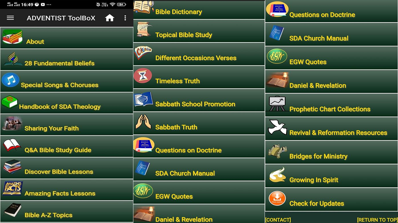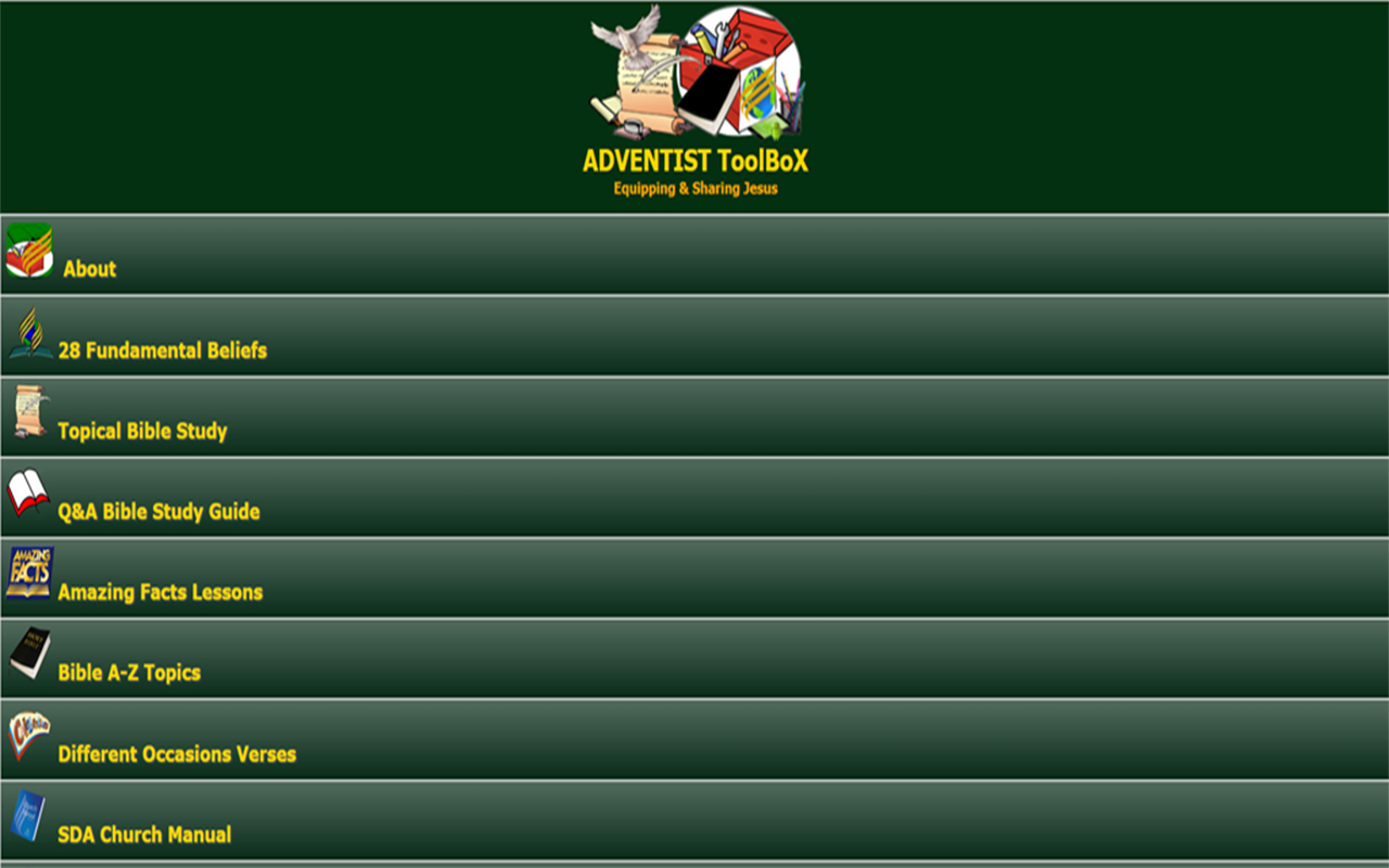 Adventist Toolbox is the best Adventist evangelism and spiritual revival materials offline. If you are a missionary, church elder, youth leader, pastor, layman and active church member in a country with bad internet connection, you must have this app to help you in your teaching, sharing and preaching.