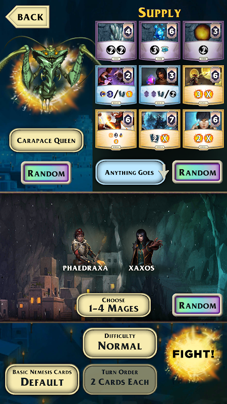 Each Mage has a unique starting card and an ability that can be charged to use in the fight. For example, Kadir has a gem that heals any mage, and an ability to let any mage prep a lot of spells. Xaxos has a spell that reveals the top card of the turn order deck and an ability that helps allies charge their abilities.