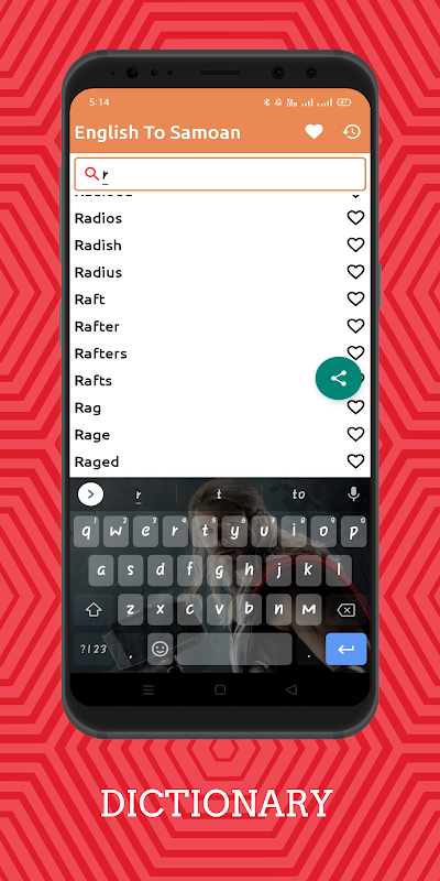 You can have a favorite list in the English Samoan dictionary also. The Samoan words which will become your favorite during the use of the app, you can keep them as your favorite ones. In the Right hand of every word, a transparent heart-shaped icon is there. Tap on the heart icon and see it turning red in color just like Insta.