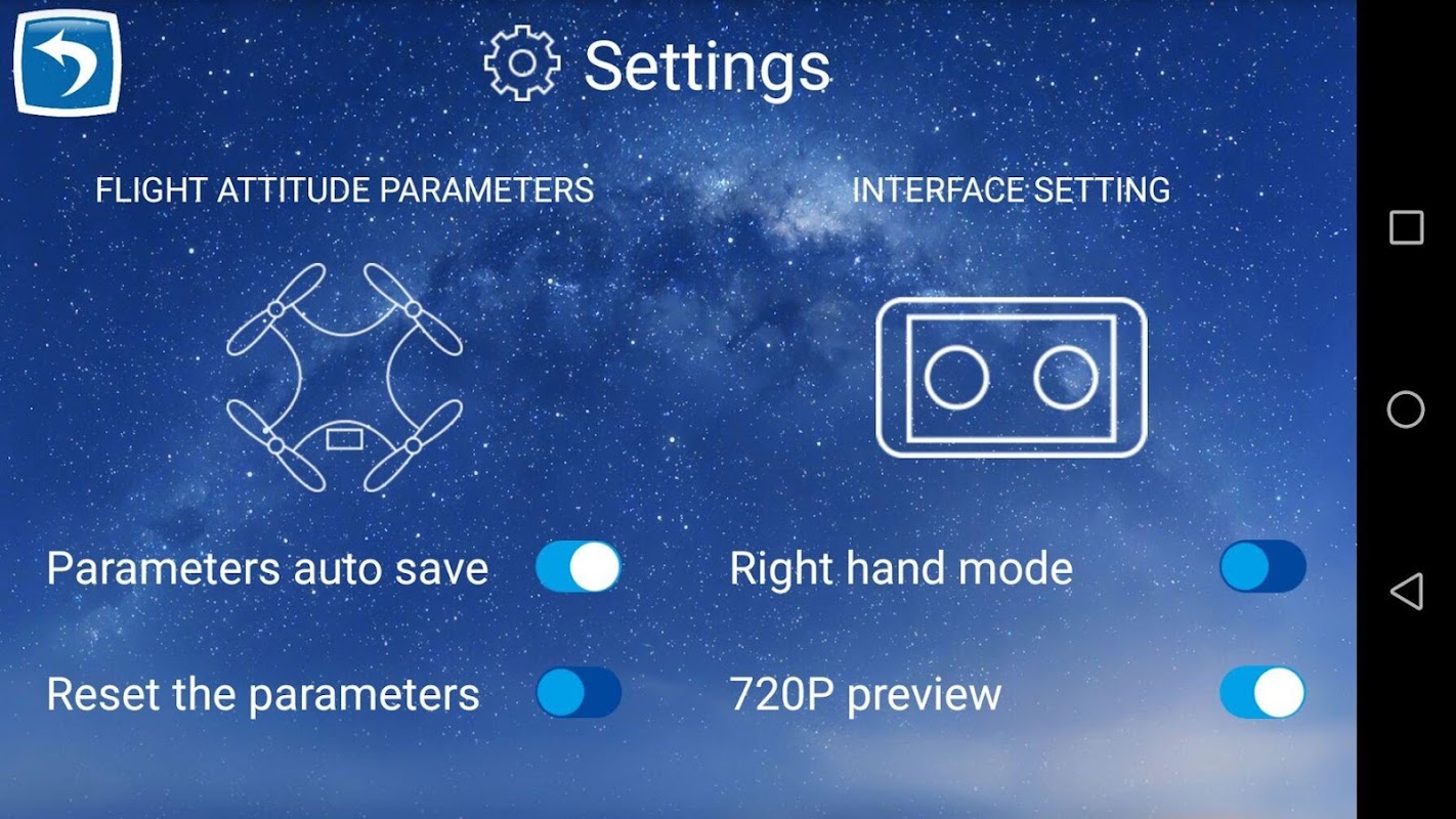 This APP can control the aircraft by WiFi of the Android smartphone.